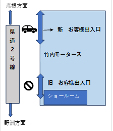 ご来店の際には新しい出入口(ダイハツの看板下)をご利用下さいますようお願いいたします。